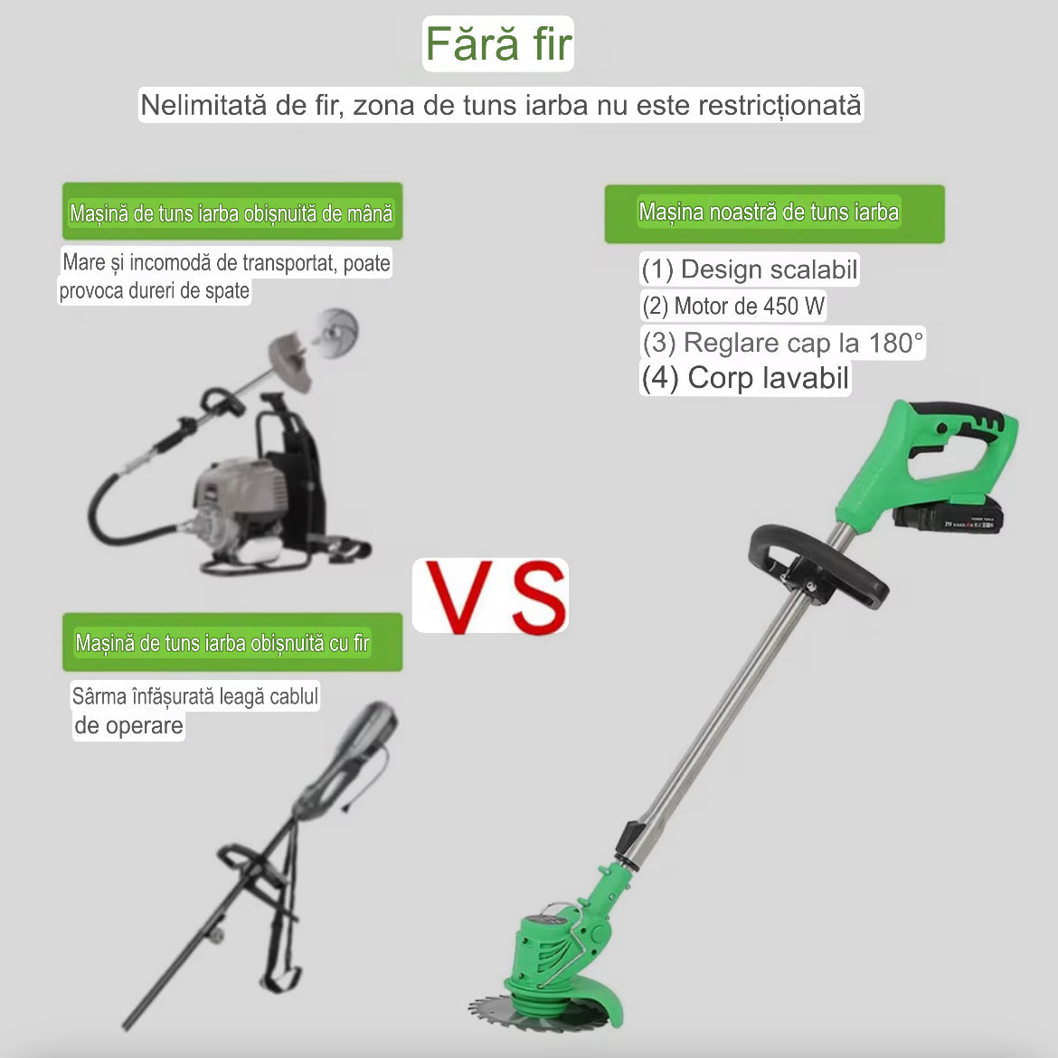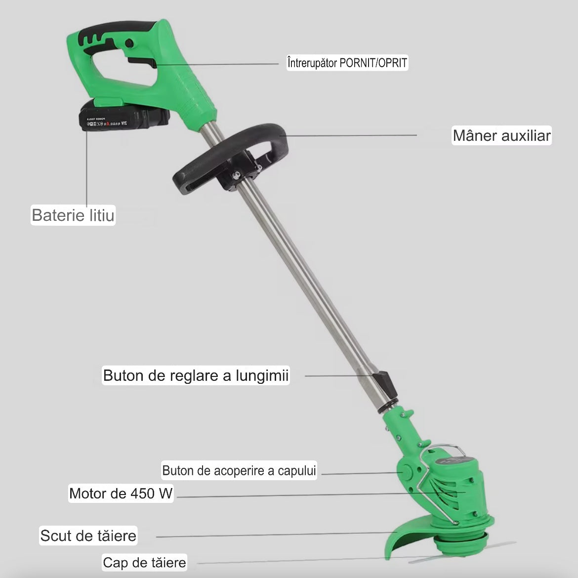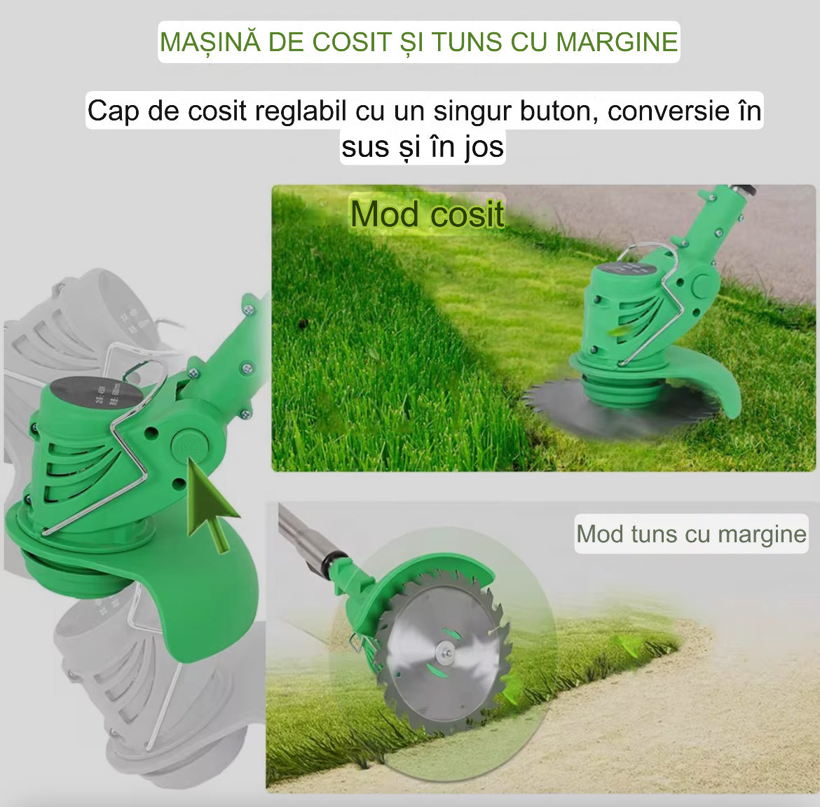 Motocoasă Electrică Profesionala cu 2 acumulatori 2x48V – Putere Mare 18.000 RPM, Reglabilă (Telescopică) + 9 Accesorii