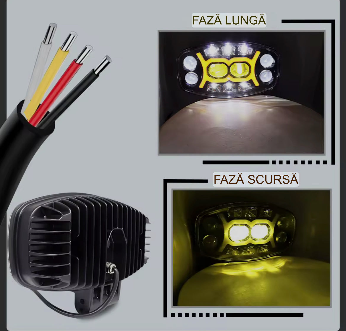 Proiector LED 10″ – Fază scurtă galbenă 36 W, fază lungă albă 72 W, poziție galbenă 5 W, 12-36 V, IP67