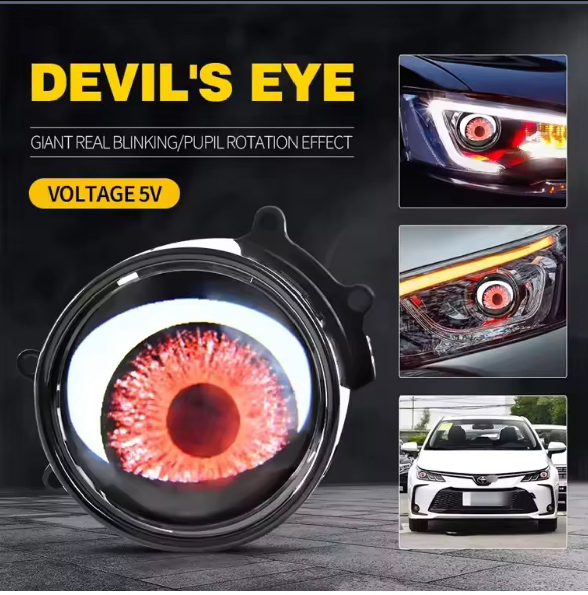 Set 2 Lupe/Proiectoare Devil Eyes cu LED Display 3 inch,Telecomandă și 6 Moduri de Iluminare