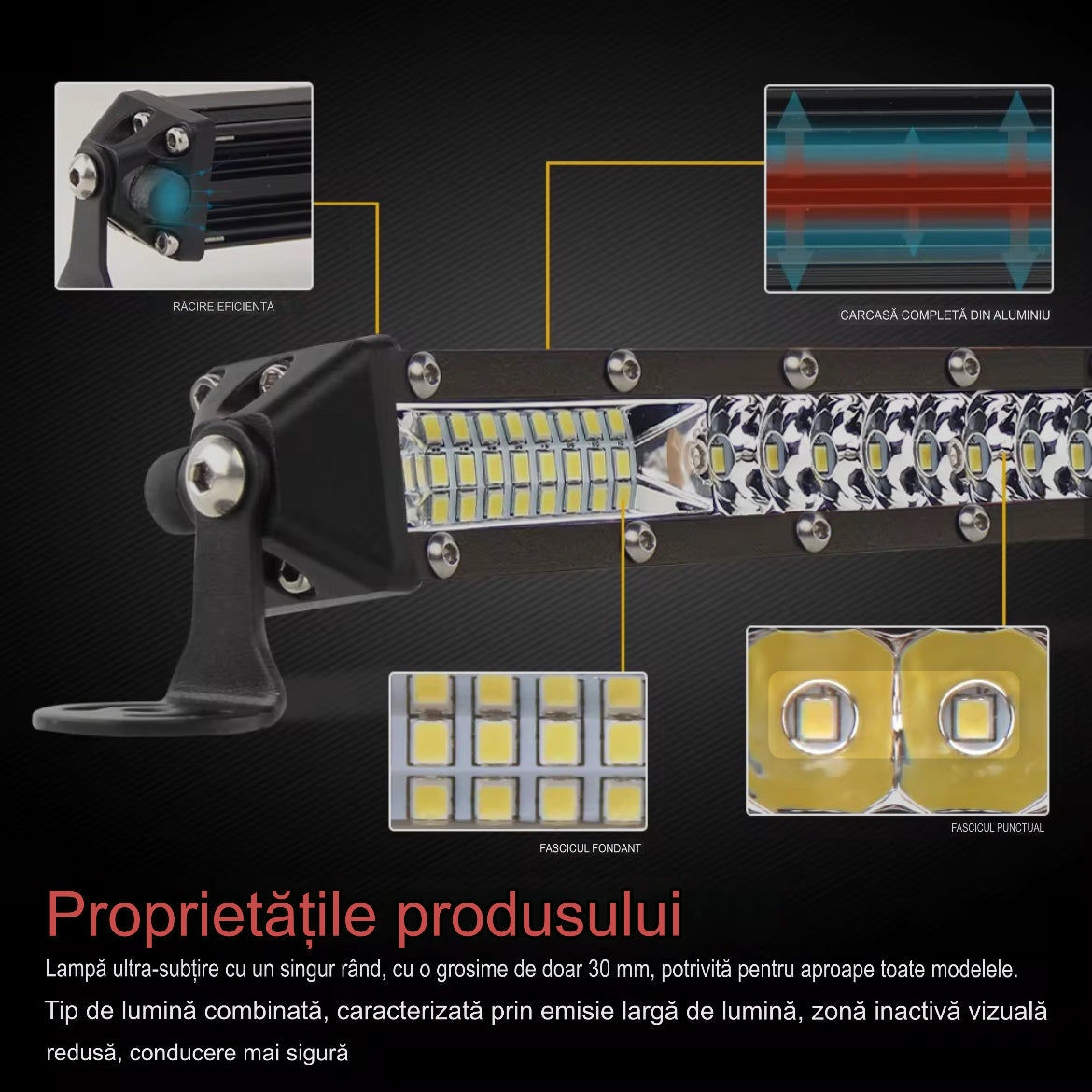 Luminozitate extremă – LED-uri de înaltă calitate, cu flux luminos ridicat și distribuție uniformă a luminii.