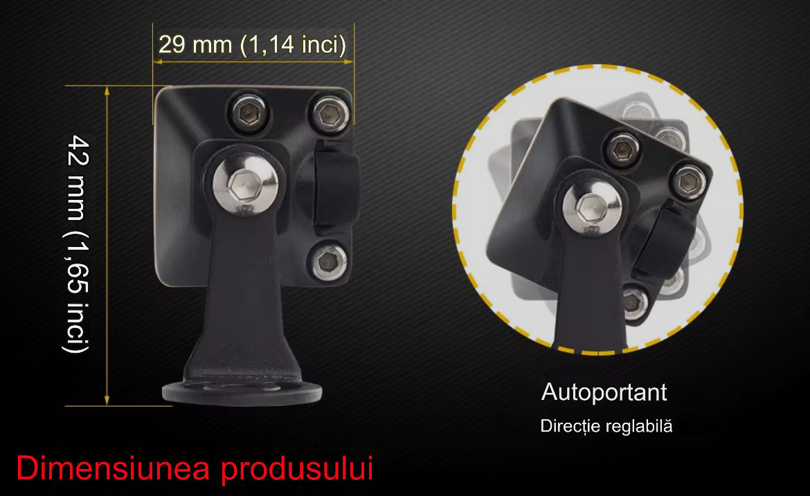 Design slim și modern – ușor de integrat pe bare frontale, plafon sau suporturi laterale.