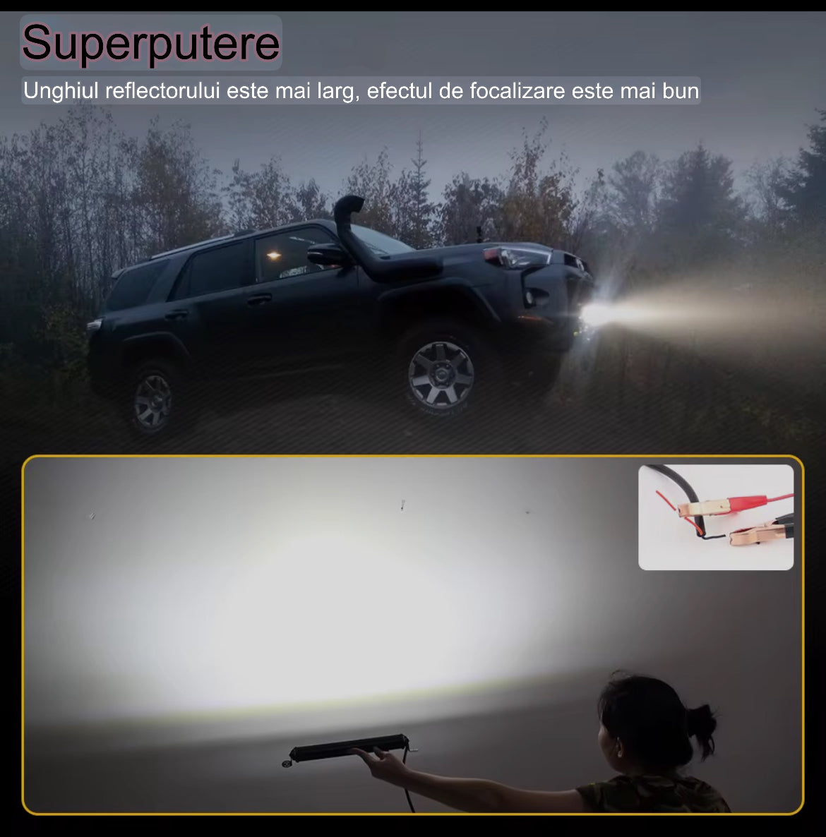 ✔ Vizibilitate excelentă pe drumuri neasfaltate, teren accidentat sau condiții meteo severe