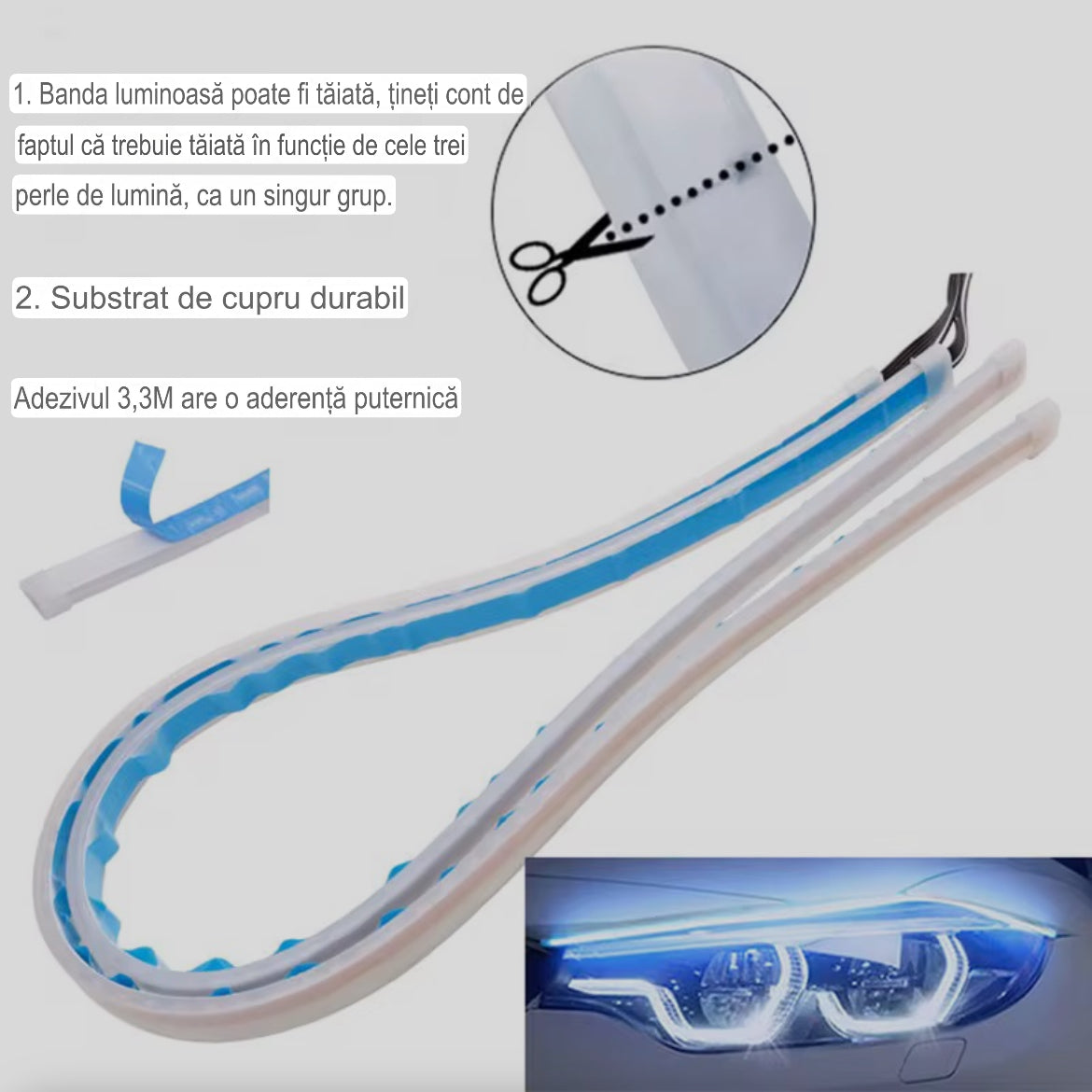 Lumini de Zi DRL cu Semnalizare Dinamică – Set 2 Benzi LED Ultra-Slim